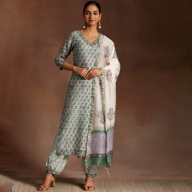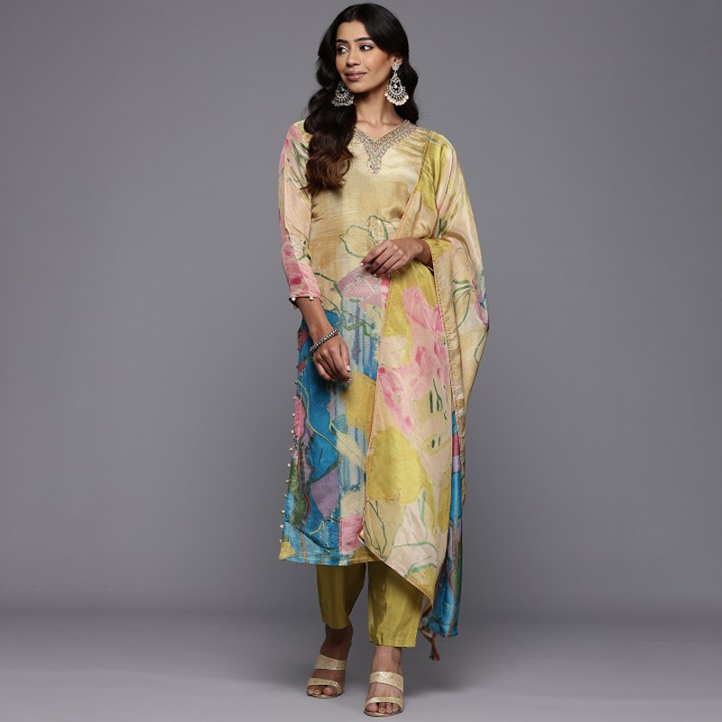 Design Details : Yellow and green saree Woven design saree with woven design border border Has kantha work detail The saree comes with an unstitched blouse piece The blouse worn by the model might be for modelling purpose only. Check the image of the blouse piece to understand how the actual blouse piece looks like. Size & Fit : Length: 5.5 metres plus 0.8 metre blouse piece Width: 1.06 metres (approx.) Material & Care : DRY WASH, HAND WASH